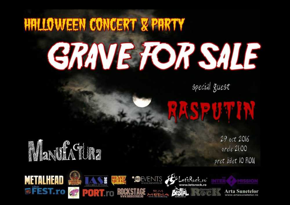 Sambata, 29 octombrie 2016, orele 21:00, va invitam la concertul celor de la Grave For Sale pentru a sarbatorii Halloweenul asa cum se cuvine, adica cu un live act conceput special pentru acest eveniment dar si un after party pe aceeasi tema. Nebunia va avea loc in Timisoara in club Manufactura ( Splaiul T. Vladimirescu Nr.9) , avand ca invitat special pe misteriosul Rasputin, o intalnire ce se vrea dea dreptul spooky, direct pe scena.