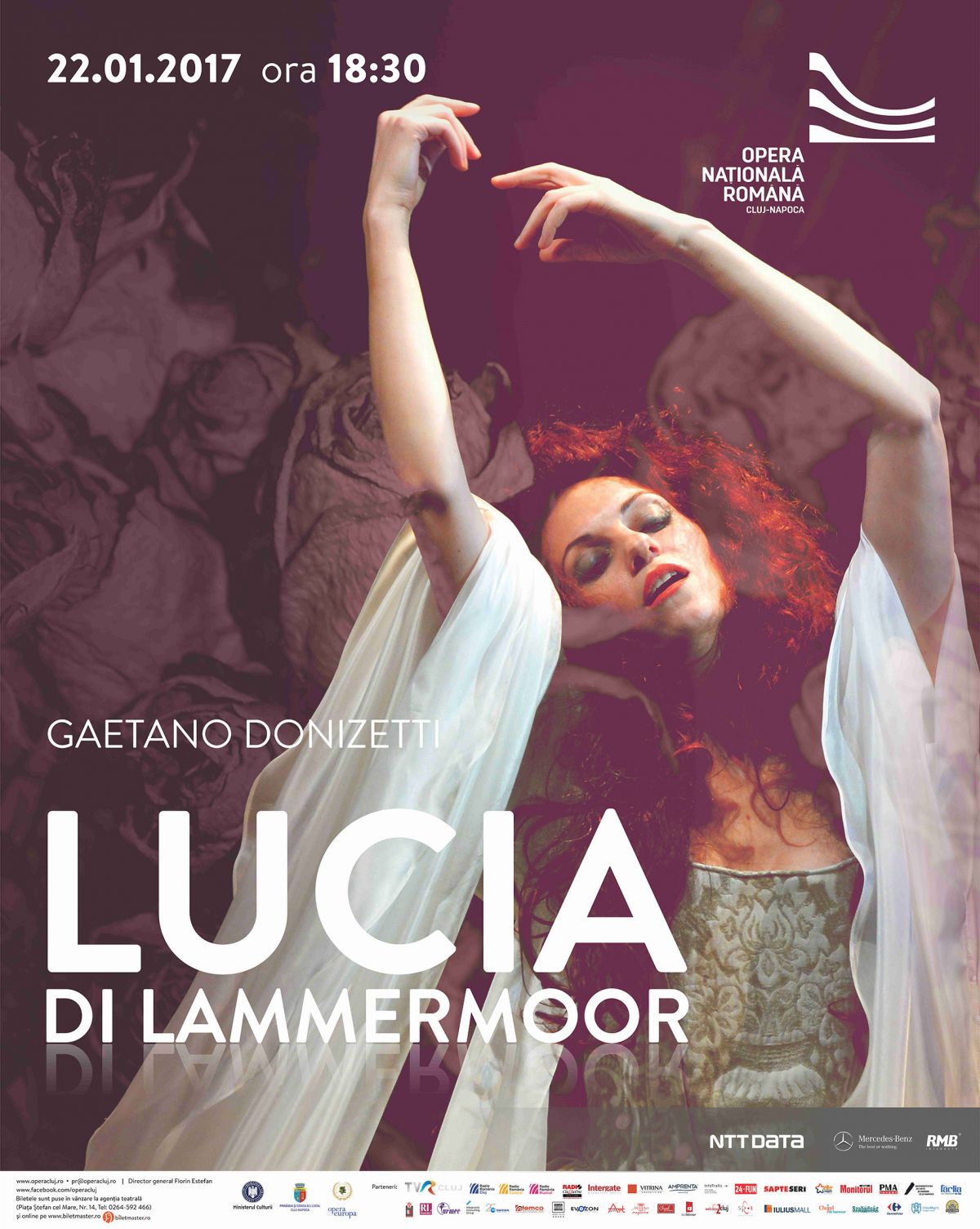 Duminică, 22 ianuarie 2017, Opera NaÅ£ională Română din Cluj-Napocaare plăcerea de a vă invita, începând cu ora 18:30, la spectacolul special al acestei luni: ”LUCIA DI LAMMERMOOR”, de Gaetano Donizetti, în unica reprezentaÈ›ie a acestei stagiuni!