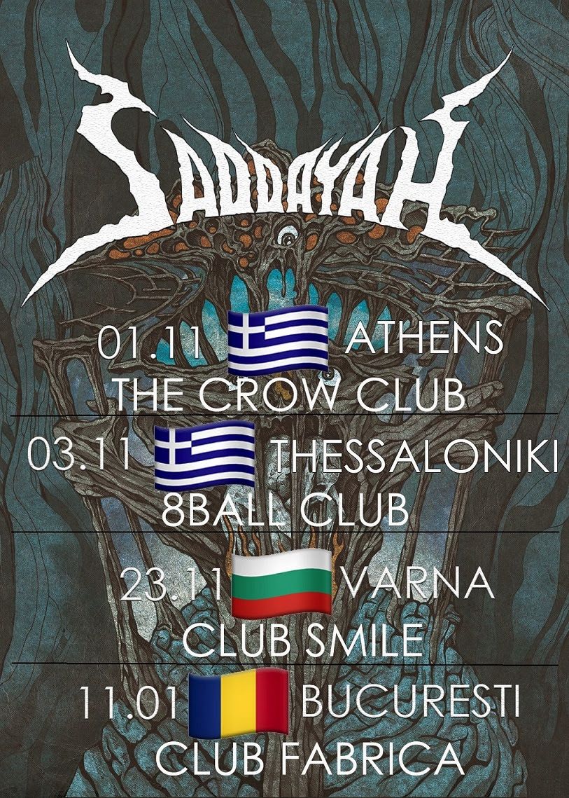 Saddayah ajunge pentru prima data in Grecia la inceputul lunii viitoare, avand programate doua cantari in Atena (Crow Club, 1 noiembrie) si in Thessaloniki (8Ball Live Stage, 3 noiembrie), urmand ca pe 23 noiembrie sa revina in Bulgaria, de aceasta data cu un concert in Varna (Smile Club).