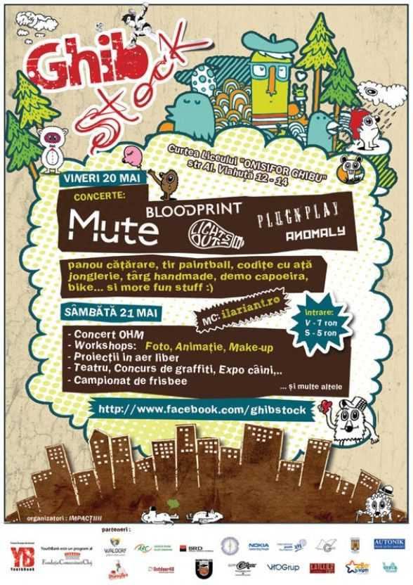 Clubul IMPACTII din cadrul programului IMPACT al Fundatiei Noi Orizonturi organizeaza in curtea Liceului Teoretic Onisifor Ghibu cea de-a treia editie a evenimentului Ghibstock. In cadrul festivalului vor avea loc recitaluri PRO-BONO sustinute de Carla (14.00), Mute (17.30), Mr. Levy (19.00), Șuie Paparude (20.20) și OM (22.00). Ca activități, se vor face catarari pe panou, proiectii in aer liber de scurt metraje de film si animatie, workshop-uride animatie stradala si jonglerie, dans, jocuri pentru copii, standuri cu obiecte hand-made, codite cu ata, face-painting, caricaturi, mancare, proiectii de film in aer liber, tir paintball si arc, expozitie si demonstratie dresaj caini si alte activitati distractive, toate in cadrul unui singur eveniment.
