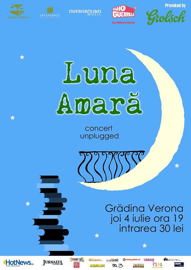 Joi, 4 iulie, de la ora 19:00, seria de concerte acustice de pe timpul verii continua la Gradina Verona din Bucuresti. De data aceasta vor urca pe scena cei de la Luna Amara pentru un concert acustic.