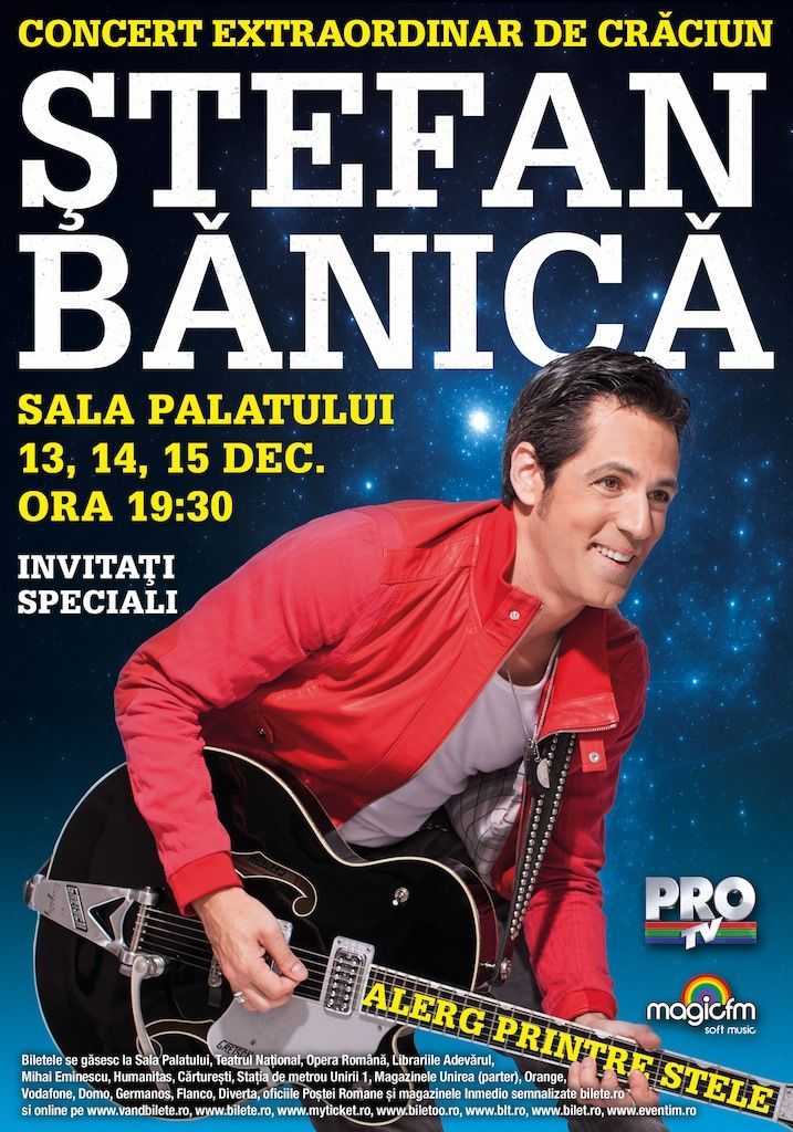 Pe 13, 14, 15 decembrie 2013, ora 19:30, Stefan Banica isi asteapta publicul la Sala Palatului cu o atmosfera de poveste, pentru a petrece impreuna seri de neuitat, pline emotie, bucurie si energie.