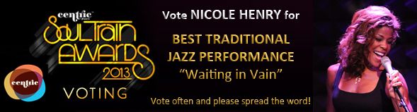Fresh off a hugely successful, sold-out US summer tour, internationally-acclaimed jazz/soul chanteuse Nicole Henry has earned a 2013 Centric Soul Train Award nomination for Best Traditional Jazz Performance for her stellar performance of “Waiting in Vain,” off her latest album ‘SO GOOD, SO RIGHT: NICOLE HENRY LIVE.’ Henry is the only solo female artist in a male-dominated category, placing her in great company with fellow nominees including George Benson (featuring Wynton Marsalis), Jeffrey Osborne (featuring Chaka Khan), Tony Bennett (featuring Marc Anthony), and Terence Blanchard. This category is one of four awards determined by public votes and fans are encouraged to vote often. Tune in on Sunday, December 1 to watch the broadcast.VOTE online today!
