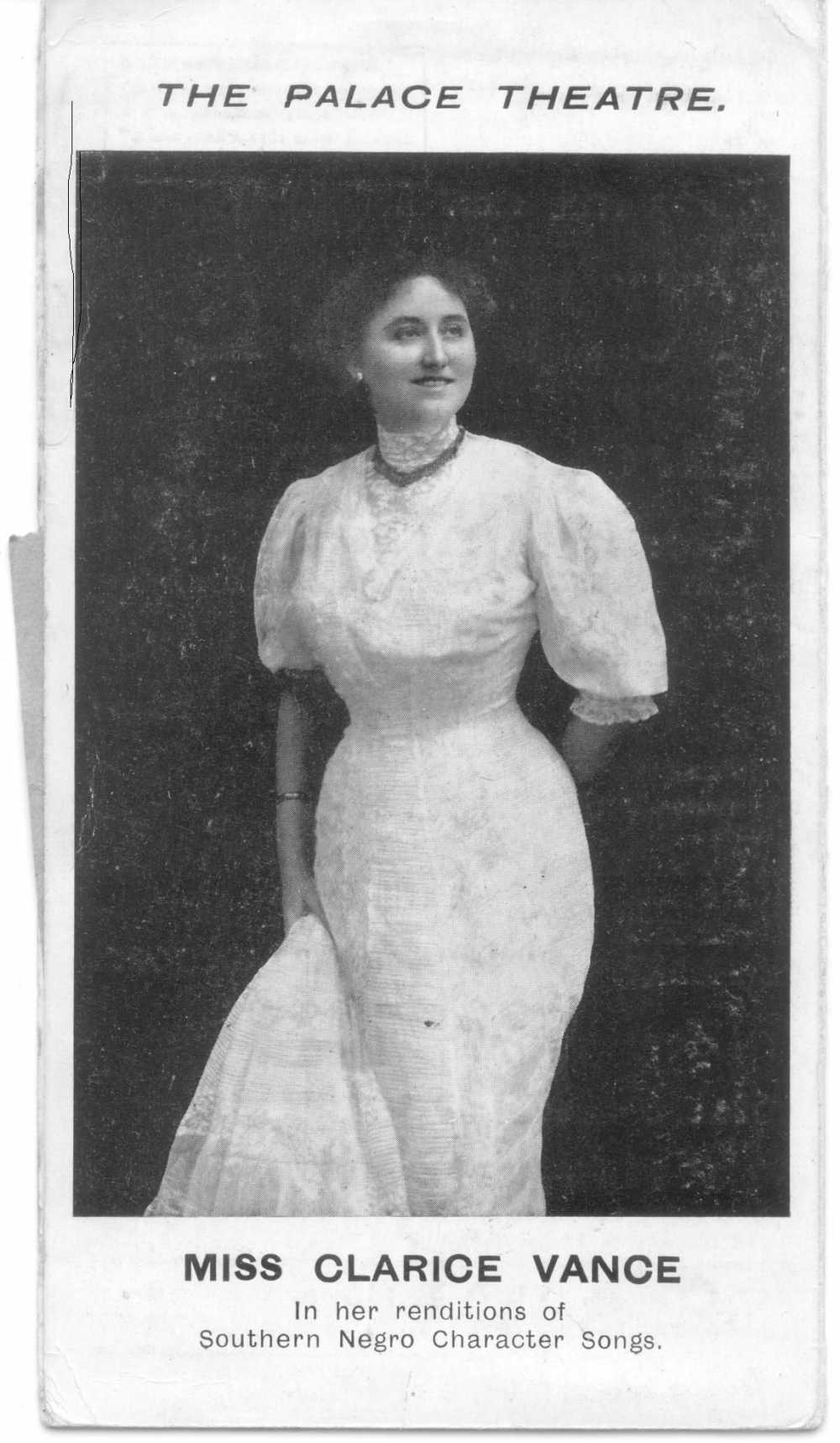 Clarice Vance (n. Clara Etta Black în 14.MAR.1870 - d. 24.AUG.1961) a fost o personalitate din SUA a teatrului Vaudeville la finalul secolului 19, supranumită The Southern Singer, deÈ™i s-a născut în statul Ohio.