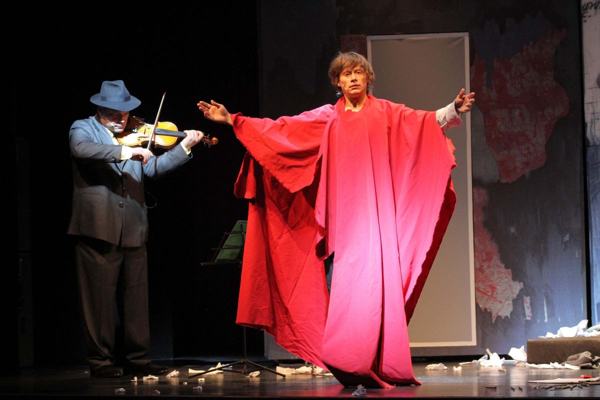 Dincolo de jocul profund si cutremurator al actorului Marius Manole, publicul il va putea vedea si pe reputatul violinist Alexander Balanescu in dublu rol: pe langa faptul ca a compus muzica spectacolului, pe care o si interpreteaza live pe scena, domnul Balanescu este responsabil si cu aducerea la viata a fantasmelor personajului principal, subliniind incetul cu incetul declinul acestuia.