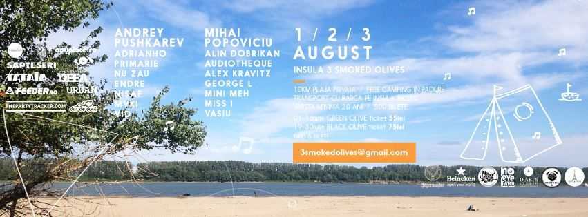1-2-3 August, petrecem la SINGURUL FESTIVAL DE MUZICA ELECTRONICA DIN ROMANIA DESFASURAT PE O INSULA: 3 |DAYS| SMOKED OLIVES FESTIVAL - 10 km de plaja, free camping, padure si muzica!Ne 'imbarcam' din nou pe coordonatele: Padurea Chiciu (punct trecere bac Chiciu) - Ostrov, Calarasi, Romania.