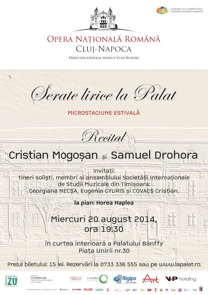 Etichete: Ansamblul Societații Internationale De Studii Muzicale Din Timisoara, Cristian Mogoșan, Horea Haplea, Opera Naţionala Romana Cluj, Opera Naţionala Romana Din Cluj-napoca, Samuel Drohora, Serate Lirice La Palat