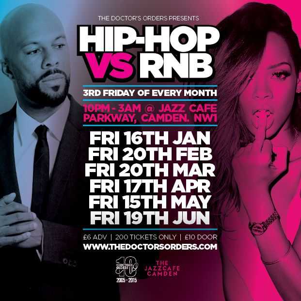 The Doctor’s Orders’ Hip-Hop vs R&B parties have fast become one of the most popular nights out in town and now the party returns in 2015 for a monthly residency at Camden’s legendary Jazz Café.