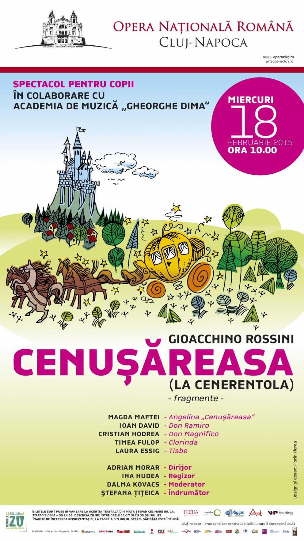 Opera NaÈ›ională Română din Cluj-Napoca are plăcerea de a vă invita cu mic, cu mare, miercuri, 18 februarie 2015, ora 10.00, la „Cenuşăreasa” (La Cenerentola), de Gioacchino Rossini, un spectacol încântător, realizat de Opera NaÈ›ională Română din Cluj-Napoca în colaborare cu Academia de Muzică „Gheorghe Dima”.